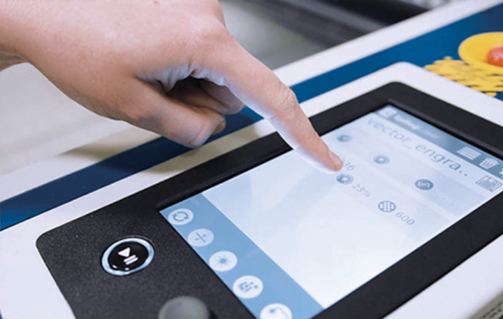 大型タッチスクリーンのパネル操作でジョブの選択や設定変更も素早く行えます。加工時間や予想加工時間の確認も判りやすく表示されます。