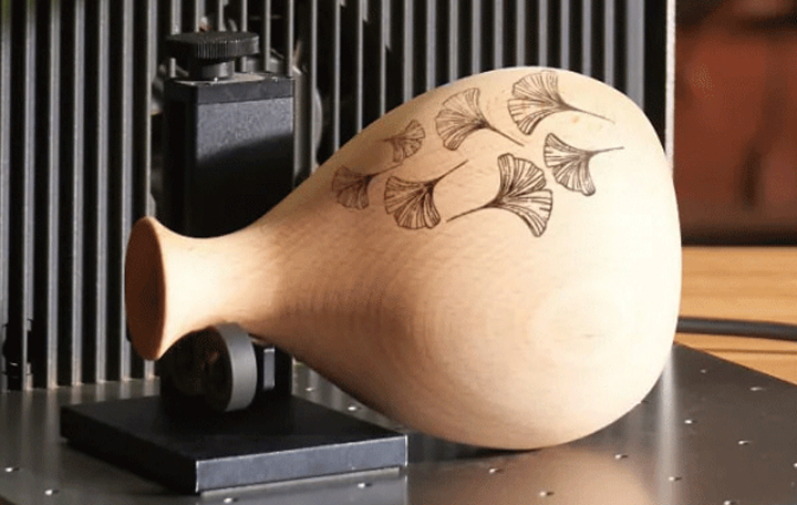 曲面オブジェクトの3D情報を解析、材料の起伏に合わせて焦点距離を自動調整することで曲面への彫刻が可能です。
